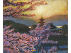 桜満開の頃の宮島。太陽が西に傾く時の美しき空気。